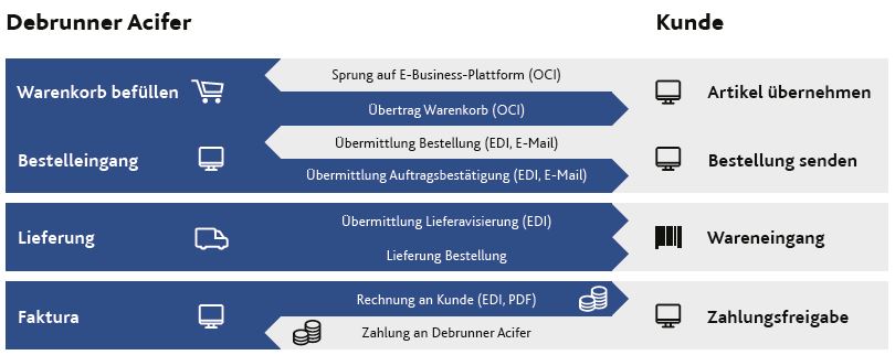 Über unsere Dienstleistung bws®connect haben Sie die Möglichkeit, Ihren Beschaffungsprozess zu beschleunigen und präzise abzuwickeln. Die direkte Verbindung zwischen den ERP-Systemen per elektronischen Datenaustausch (Electronic Data Interchange EDI) sorgt für eine wesentliche Reduktion des administrativen Aufwands, so dass Sie sich primär auf Ihre Kernaufgaben fokussieren können. Dadurch können Sie Ihre Prozesskosten senken und die Geschäftseffizienz erhöhen.